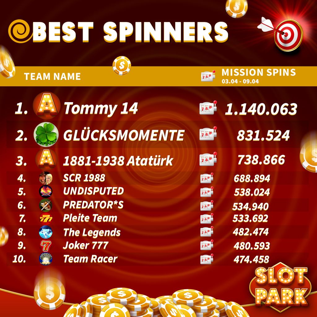 Competition Dates: 10.04-16.04 The Top 10 Teams with the highest number of Team Missions Spins are rewarded with a well-deserved bonus! Congratulations to all participating teams! It's easy to take part! 1. Spin as much as possible in Team Missions 2. Check the rankings every Friday 3. Be the …