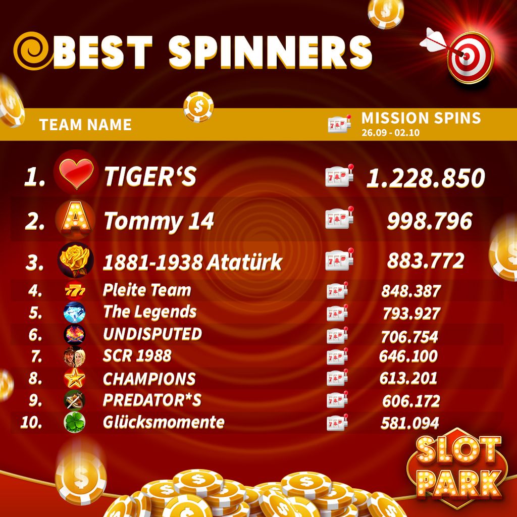 Competition Dates: 26.09-02.10 The Top 10 Teams with the highest number of Team Missions Spins are rewarded with a well-deserved bonus! Congratulations to all participating teams! It's easy to take part! 1. Spin as much as possible in Team Missions 2. Check the rankings every Friday 3. Be the …