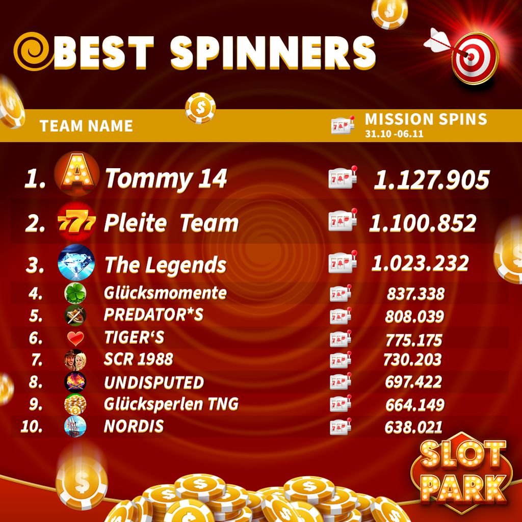 Competition Dates: 31.10-06.11 The Top 10 Teams with the highest number of Team Missions Spins are rewarded with a well-deserved bonus! Congratulations to all participating teams! It's easy to take part! 1. Spin as much as possible in Team Missions 2. Check the rankings every Friday 3. Be the …