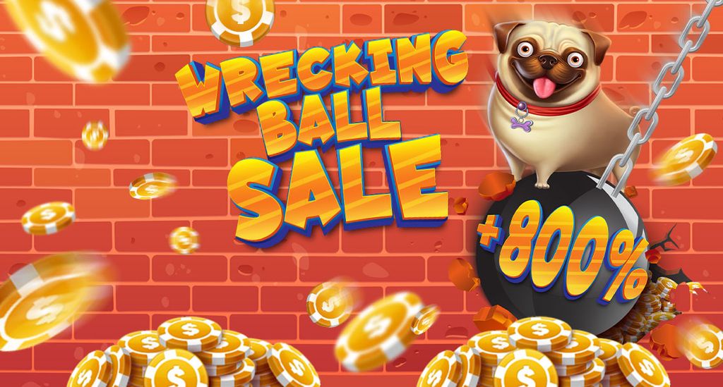 Fai spazio per percentuali extra: il 15/11 arriva la Wrecking Ball Sale – e colpisce con ben l’800% in più di dollari Slotpark nello Shop.🏗️💥Assicurati il tuo pacchetto prima che l’offerta venga svanisca!